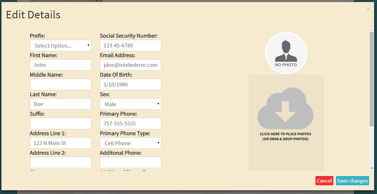 On the patient dashboard you will also be able to edit your profile. You can also upload a profile photo. This photo will be seen by the provider when messaging back and forth.