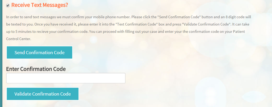 If you entered a cell phone in your profile, you can choose to receive text message notifications whenever there is an update to your case. If you choose to receive text message notifications, we will need to send you a confirmation code to verify your cell phone number. When you request a confirmation code, an 8 digit code will be texted to you. Enter in the 8 digit code into the confirmation box. The code is not case-sensitive, that is, you can enter lower case letters or capital letters.